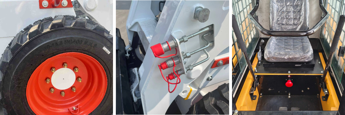 Конструкция кузова обеспечивает баланс гибкости и устойчивости: колёсная база 1370 мм, дорожный просвет 185 мм, общая длина 1160 мм и ширина 1640 мм в сочетании с шинами 10-10.5 обеспечивают лёгкое маневрирование в узких местах. Ковш шириной 1850 мм расширяет зону обработки, а эксплуатационная масса 2880 кг и усиленное шасси повышают устойчивость во время работы.